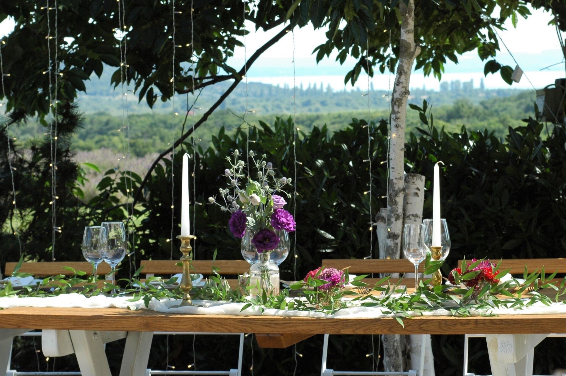 A menyegzőt alapvetően szabadtéren tartanánk. Este elképzelhető lehűlés de szeptember derekán még nem telt el sok idő a nyár óta. Ettől függetlenül van esős forgatókönyvünk is, a helyszínen pedig a teljesen szabadtéri megoldástól a fedett teraszon keresztül a zárt térig minden lehetőség adott, így fogunk tudni alkalmazkodni az időjárásnak megfelelően.